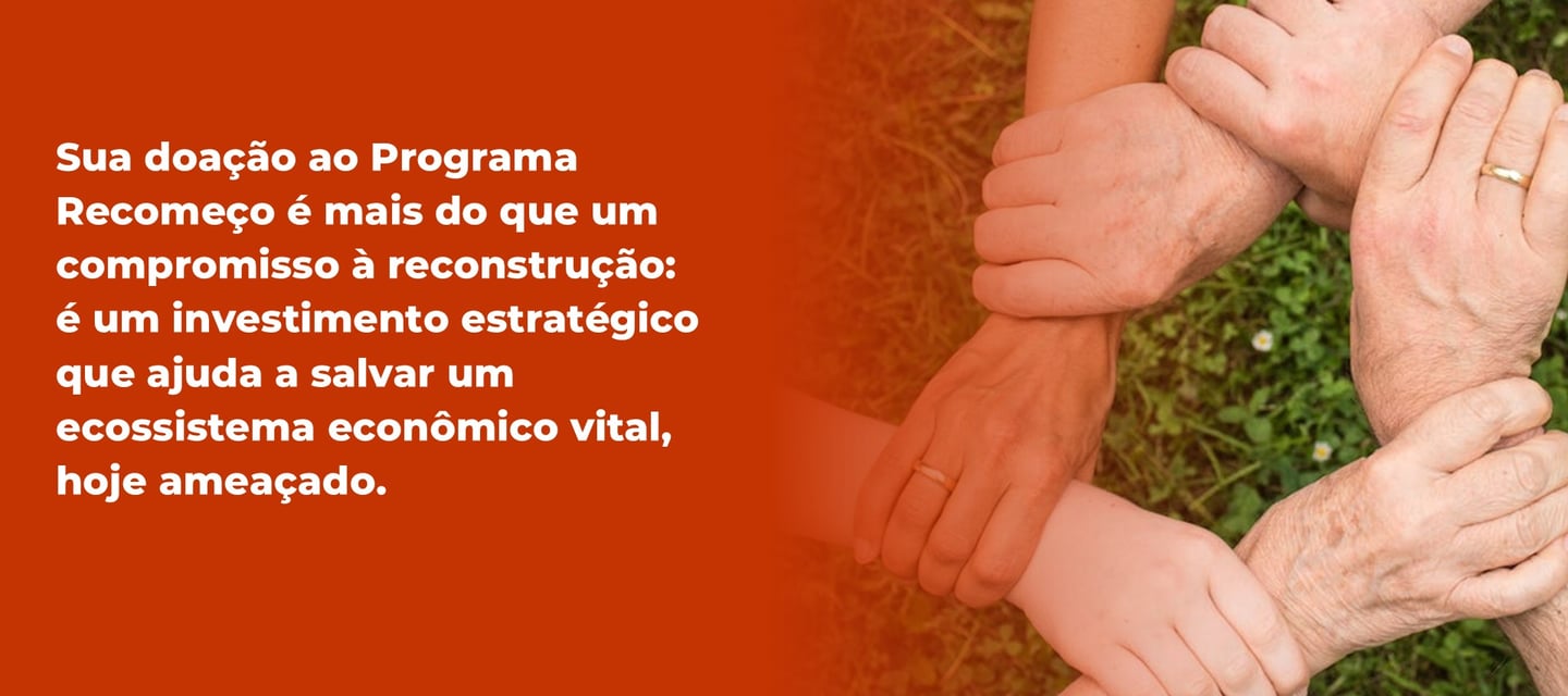 Viabilizar mecanismo sério e transparente para empresas, institutos e pessoas físicas com interesse em apoiar a reconstrução desse nicho de empreendedores do RS.